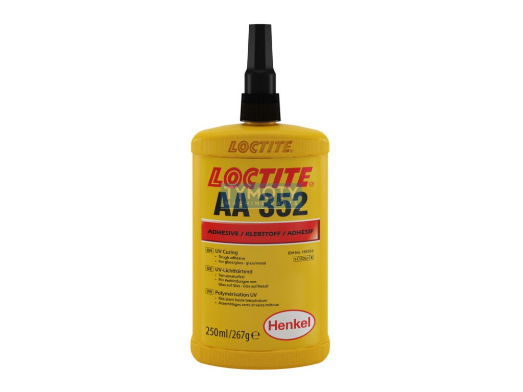 LOCTITE AA 352 Strahlenhärtender KlebstoffLOCTITE AA 352 ist ein transparenter, bernsteinfarbener, UV-licht- und aktivatorgehärteter Acrylklebstoff mit guter chemischer Beständigkeit. Ideal für Glas, Metalle und Keramik.LOCTITE® AA 352 ist ein transparenter, hellbernsteinfarbener, aktivatorgehärteter Acrylklebstoff. Er wurde für Anwendungen entwickelt, bei denen nicht ausgehärtete anaerobe Produkte nicht zulässig sind. Er weist eine gute chemische Beständigkeit und hohe Feuchtigkeitsbeständigkeit auf. Ideal für robuste Glas-, Metall- und Keramikverbindungen. Die Abbindezeit beträgt 10 Sekunden. Der Betriebstemperaturbereich liegt zwischen -40 °C und +150 °C.Zusätzliche Parameter