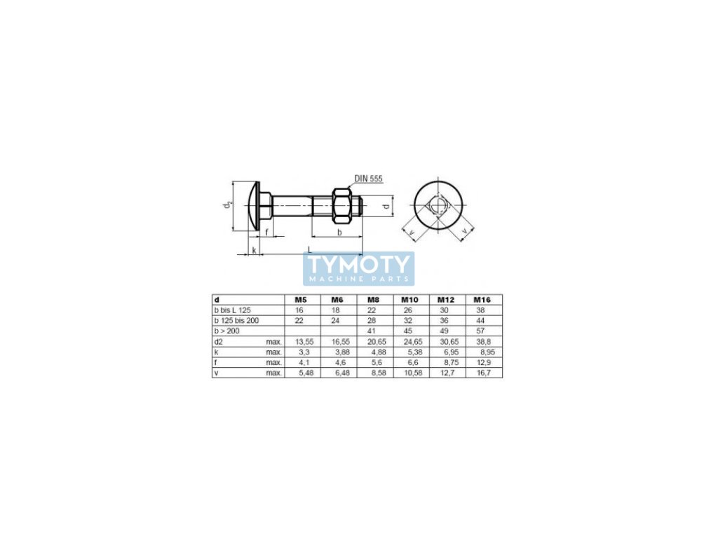 Flache Halbrundkopfschraube mit Vierkantansatz und Mutter, DIN 603/555, verzinkter Stahl Festigkeitsklasse 4.6.Zusätzliche Parameter