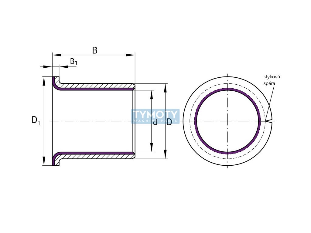 | Typ: | přírubové kluzné pouzdro s kompozitem PTFE |