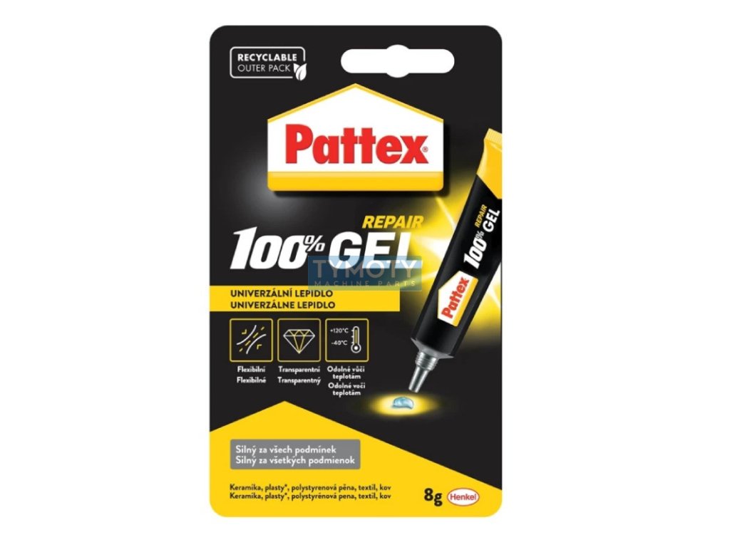 A Pattex 100% GEL ideális barkácsoláshoz, modellezéshez és javítási munkákhoz, átlátszó felületű dekoratív tárgyak készítéséhez, valamint nedvszívó és nem nedvszívó anyagok ragasztásához vagy felületkezeléséhez. Alkalmas anyagok közé tartozik az alumínium, beton, acél, rozsdamentes acél, csempe és burkolat, üveg, kerámia, fa, parafa, réz, sárgaréz, felületkezelt anyagok, GFP, bőr, vászon, papír, karton, edzett PVC, polikarbonát, expandált polisztirol, kő, cink és tükrök.
