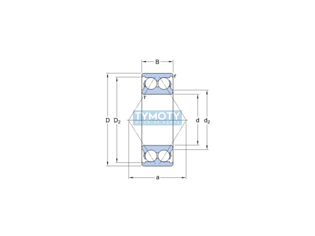 3304 A/C3 SKF csapágy - A kétsoros ferde hatásvonalú golyóscsapágyak felépítésükben és működésükben hasonlóak egy pár egysoros ferde hatásvonalú golyóscsapágyhoz, amelyek háttal vannak elhelyezve, miközben kisebb axiális helyet igényelnek, és különösen alkalmasak olyan alkalmazásokhoz, ahol merevség szükséges. Radiális terheléseket, mindkét irányú axiális terheléseket és billenőnyomatékokat tudnak felvenni. Nagyon nagy sebességgel működhetnek, és alkalmasabbak nagy axiális erők felvételére, mint a mélyhornyú golyóscsapágyak. Nagy sebességképesség. Viszonylag nagy radiális terheléseket és nagy axiális terheléseket bírnak mindkét irányban. Alkalmasak, ahol merev csapágyelrendezésre van szükség. Kevesebb axiális helyet igényelnek, mint egy hasonló egysoros ferde hatásvonalú golyóscsapágypár.Kiegészítő paraméterek