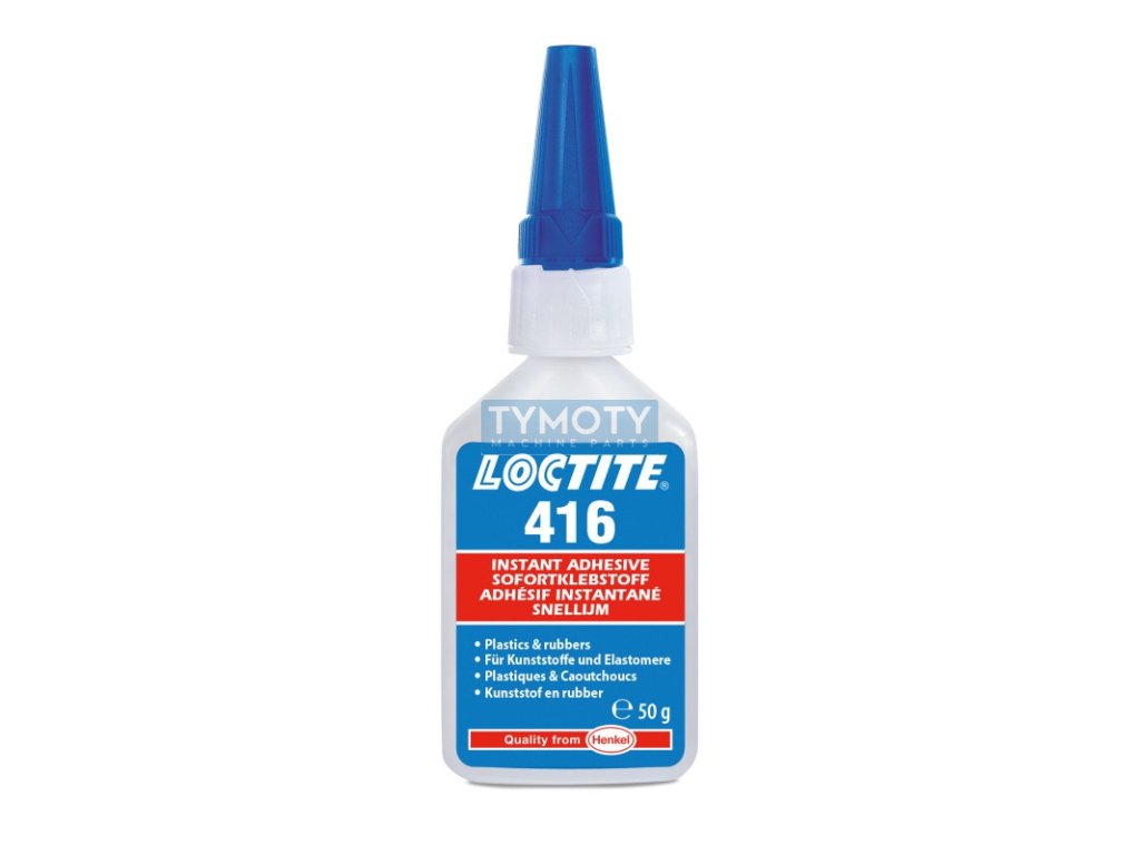 LOCTITE 416 je transparentní, bezbarvé, univerzální vteřinové lepidlo na bázi ethylu s vysokou viskozitou. Vhodné pro kovy, pryže a plasty a také vhodné pro polyolefiny v kombinaci s primerem LOCTITE SF 770 nebo LOCTITE SF 7239. Manipulační pevnost má za 20 - 40 sec.