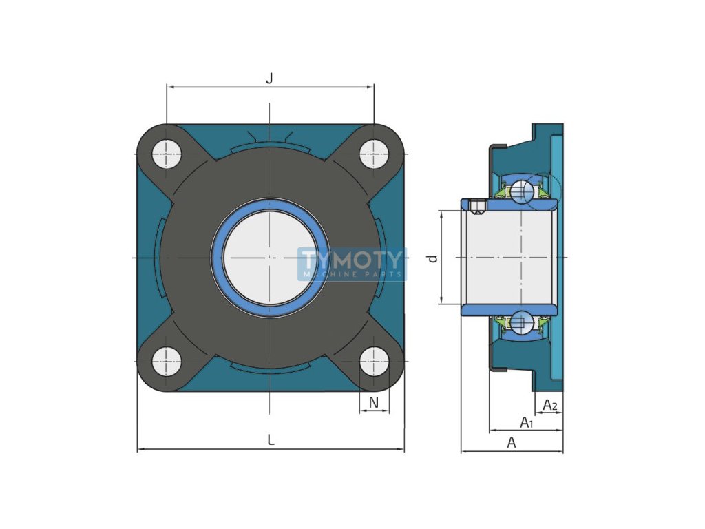 FKL LEFN 208 2TC.H – wysokiej jakości bezobsługowy zespół łożyskowy z dodatkową stalową osłoną. Obudowa wykonana jest z żeliwa sferoidalnego, łożysko uszczelnione jest uszczelką trójwargową.Parametry dodatkowe