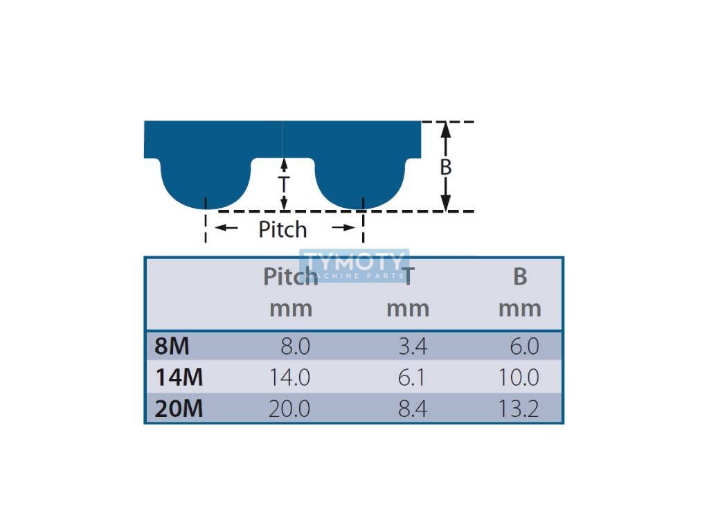 | Kategoria: | Paski > płaska przekładnia > 8M (8x6) > szerokość 20 mm |