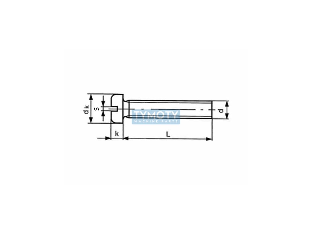 Śruba z łbem walcowym niskim z rowkiem, stal nierdzewna A2, DIN 85, ISO 1580, ČSN 021137.Parametry dodatkowe