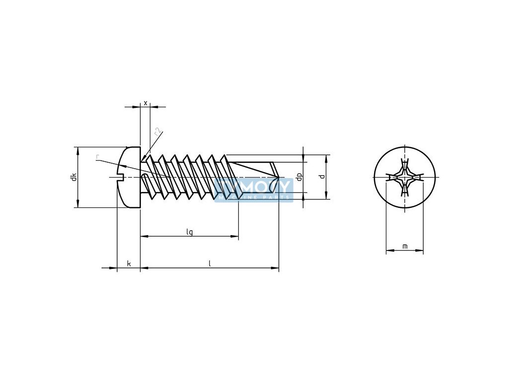 Wkręt samowiercący TEX z łbem walcowym, zaokrąglonym i gniazdem krzyżowym Phillips DIN 7504N, ISO 15481. Stal ocynkowana, hartowana 560 HV. Stosować do blach o grubości od 1,75 do 4,4 mm.Parametry dodatkowe