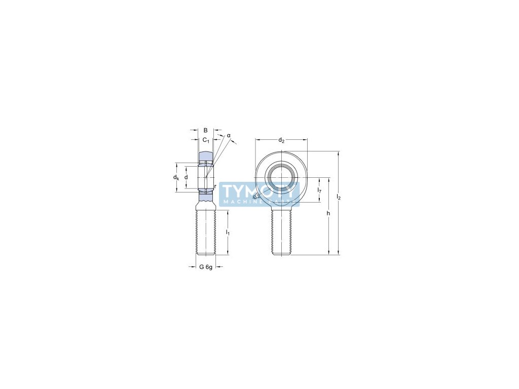 Capăt de tijă, filet metric exterior pe dreapta, rulment-oțel/oțelParametri suplimentari