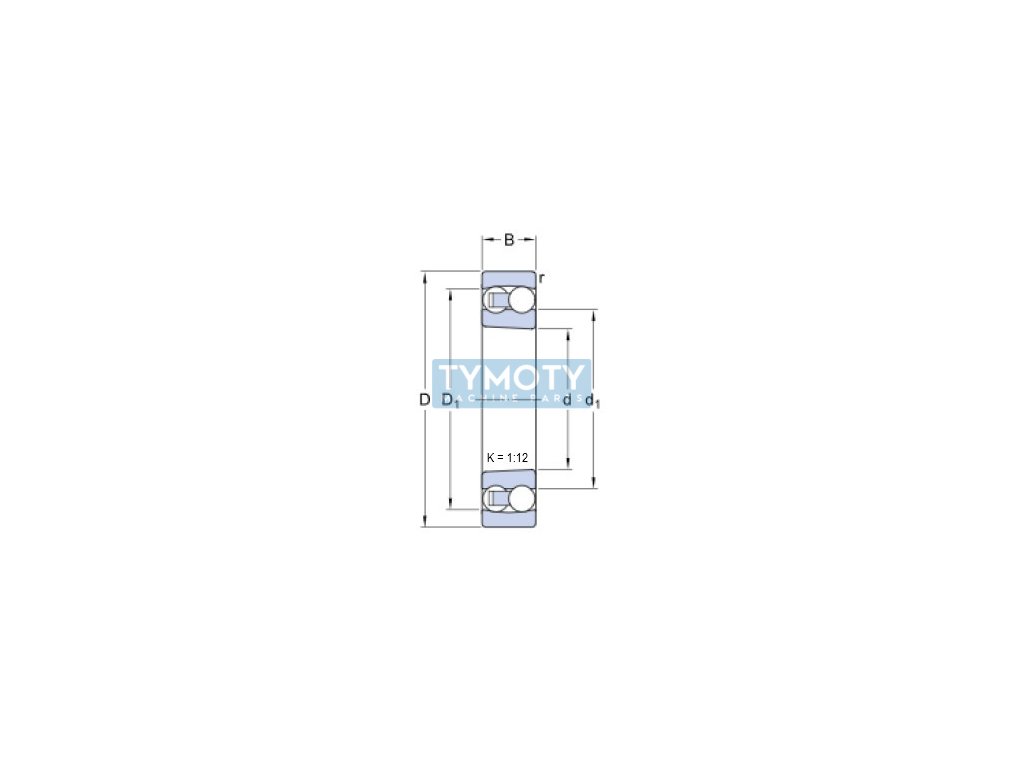 SKF 2213 EKTN9/C3 - rulment autoaliniant cu bile, neseparabil, pe două rânduri, cu alezaj conic de 1:12, design intern optimizat, colivie din plastic din poliamidă 6.6 armată cu fibră de sticlă, ghidată de două rânduri de bile și cu joc radial. Canal de rulare sferic pentru ambele rânduri de bile, care permite înclinarea rulmentului și compensarea nealinierii sau deformării arborelui față de carcasă. Rulmentul poate funcționa la temperaturi de până la +120°C.Rulmentul este montat pe un arbore cilindric folosind un manșon de adaptare H 313.