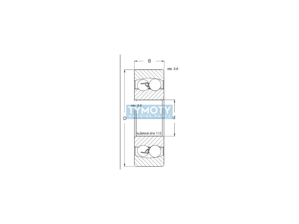 ZKL 1211 K - rulment autoaliniant cu bile, nedemontabil, pe două rânduri, cu alezaj conic, o colivie din oțel presat ghidată de două rânduri de bile și cu joc radial normal.Inelul exterior are o cale de rulare sferică comună pentru ambele rânduri față de carcasă sau pentru devierea arborelui.
