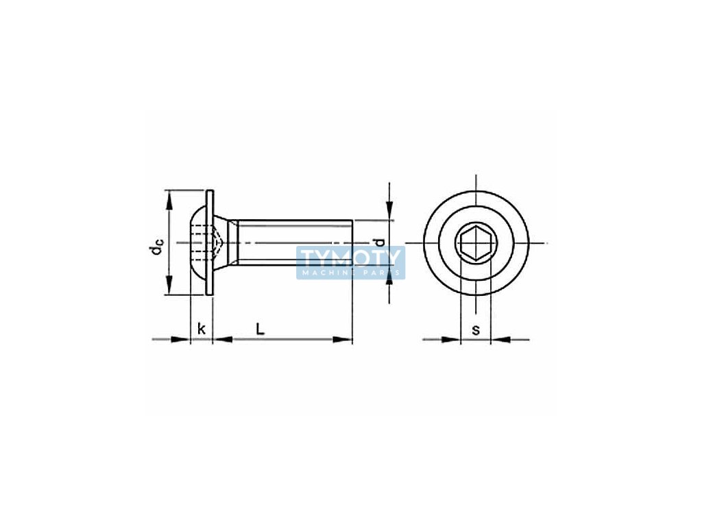 Șurub cu cap jumătate rotund cu guler hexagonal ISO 7380FL M5x25 oțel inoxidabil A2
