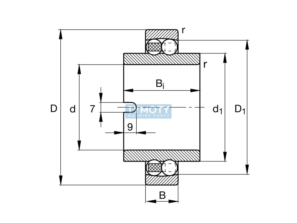 FAG 11208 TVH FAG - dvojradové naklápacie guličkové ložisko s rozšíreným vnútorným krúžkom.Dodatočné parametre