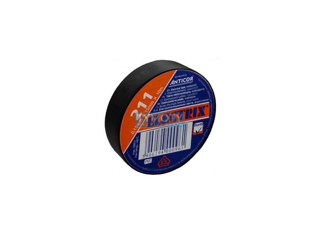 PVC izolačná páska, hrúbka 0,13 mm, šírka 15 mm, dĺžka 10 m, farba čierna. Vhodná na elektrickú izoláciu a ochranu vodičov.