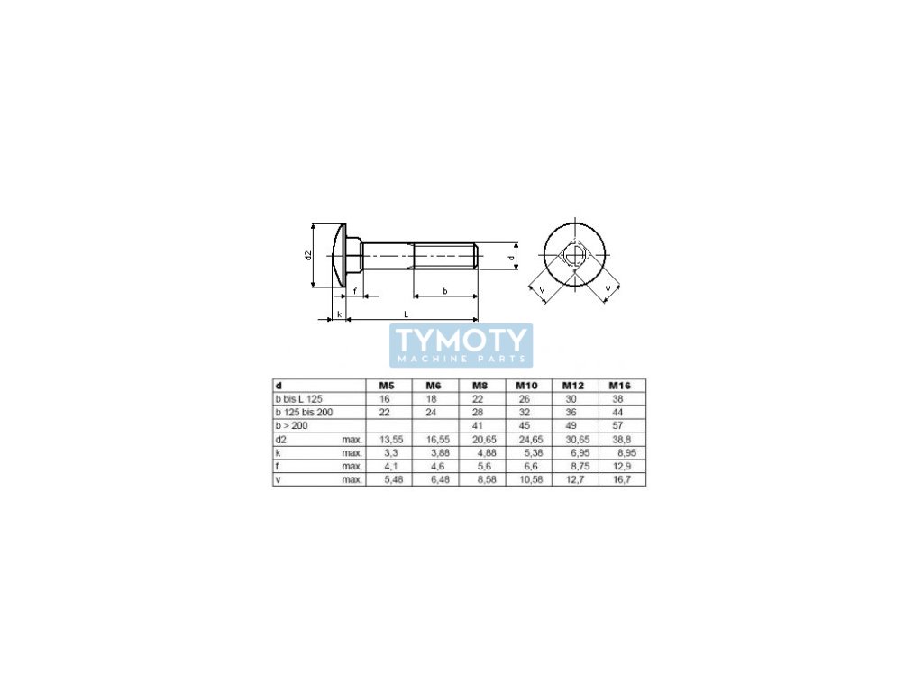 Nerezová skrutka s plochou polguľatou hlavou a štvorcovým krkom DIN 603, ČSN 021319, nerezová oceľ A2.Dodatočné parametre