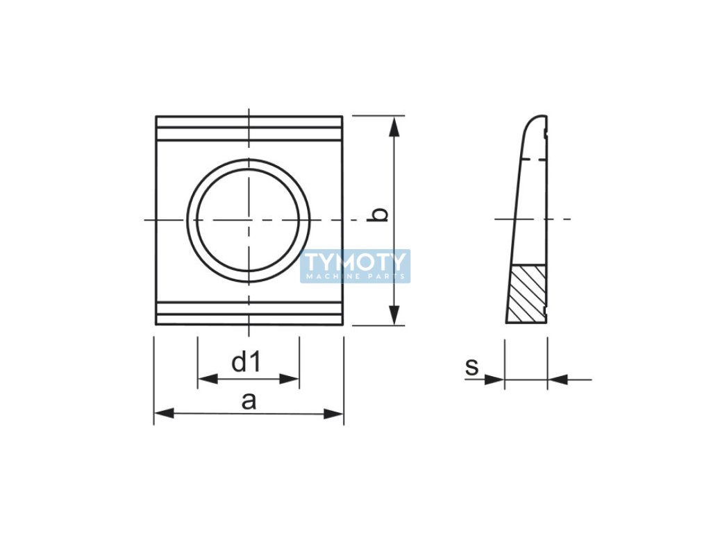 The wedge washer for U-profiles according to DIN 434 is specifically designed for use with U-shaped profiles. This washer is made of steel and is galvanically galvanized, which ensures increased corrosion resistance and extends its service life in harsh conditions. The zinc coating is carried out with an 8% slope, which ensures optimal force distribution and stability during assembly.The washer has a square shape and a wedge profile, which is designed to compensate for unevenness or slopes in the structure, thus ensuring a strong and stable connection. The dimensions of the washer are adapted for use with metric M12 threads, with a hole diameter of 13.5 mm, which allows for precise and secure mounting on screws or threaded rods.